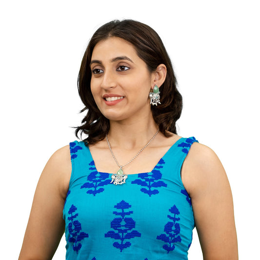 Shining Antique Silver Oxidised Bird Kundan Pearl Pendant...