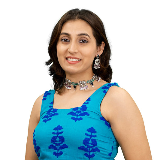 Shining Jewel Silver Plated Oxidised CZ, Kundan, Pearl, E...