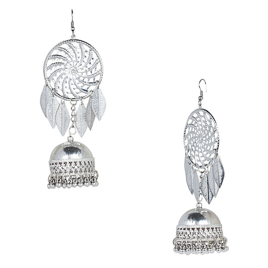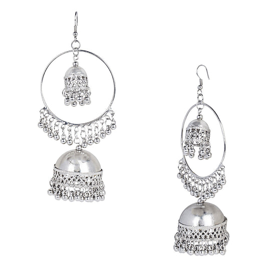 Stylish Oxidised Silver Plated Designer Chandbali Jhumka ...