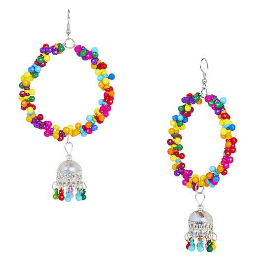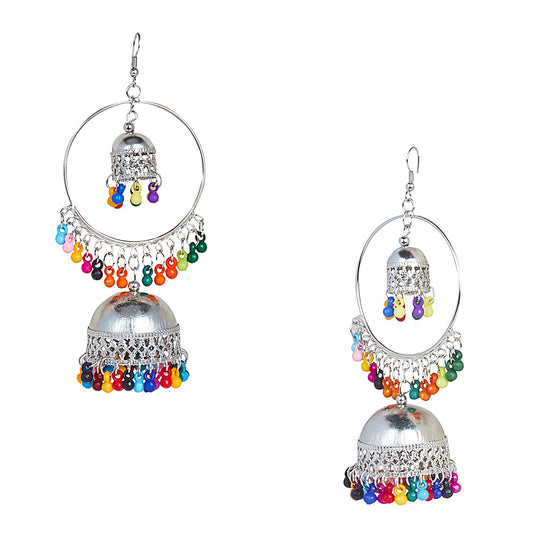 Oxidised Silver Multicolor Stylish Chandelier Jhumka Earr...