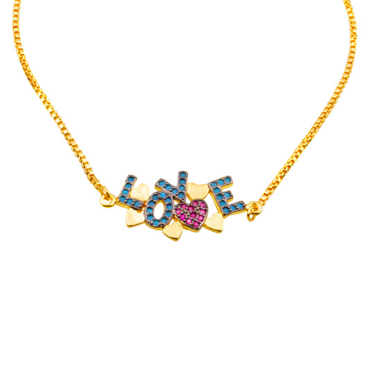 22K Gold Plated American Diamond Love Charm Strand Bracel...