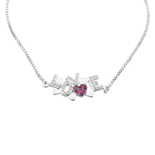 Sterling Silver Plated American Diamond Love Charm Strand...