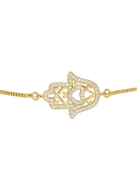 Fine Gold Plated Evil Eye & Hamsa Designer Charm Brac...