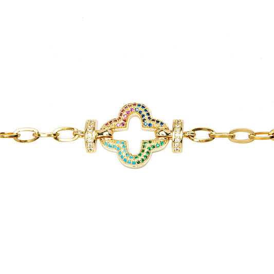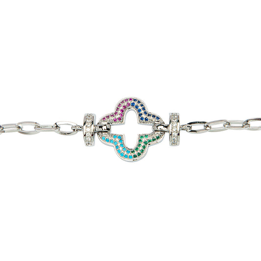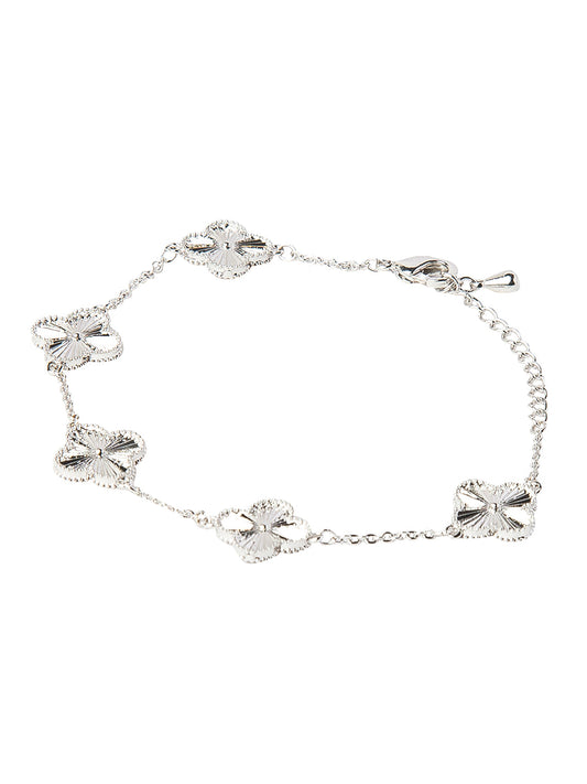 Silver Plated American Diamond Designer Flower Clover Bra...