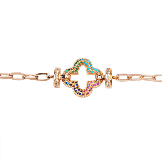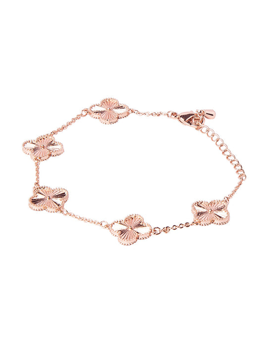 Rose Gold Plated American Diamond Designer Flower Clover ...
