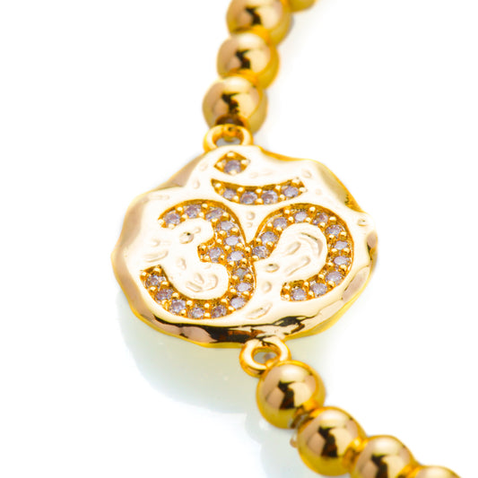 22K Gold Plated American Diamond Om Charm Strand Bracelet...