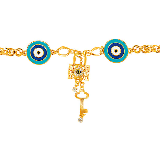 22K Gold Plated American Diamond Evil Eye Charm Bracelet ...
