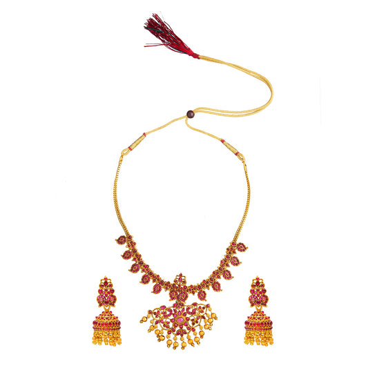 Shiining Jewel Gold Plated Temple Jewellery Choker Neckla...