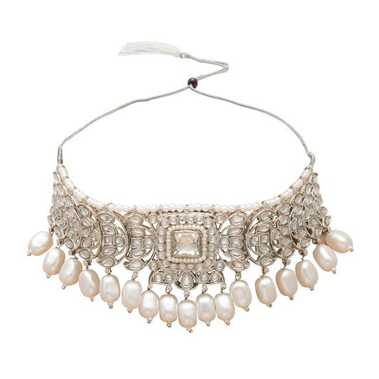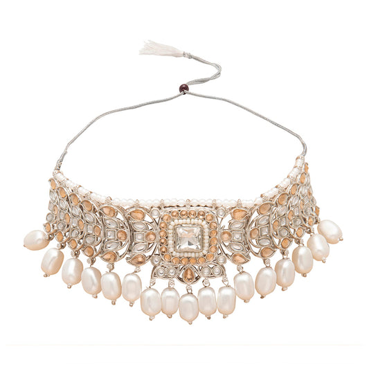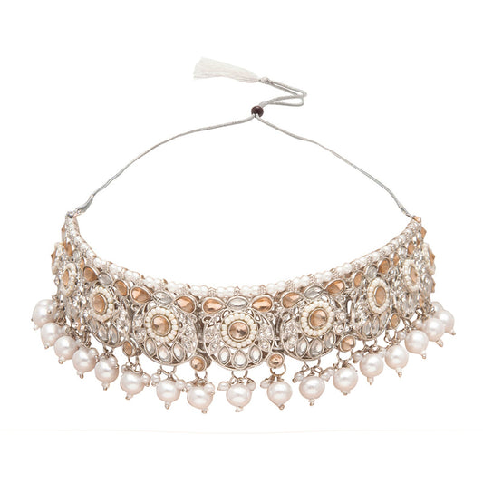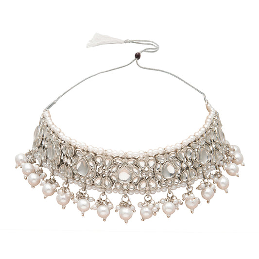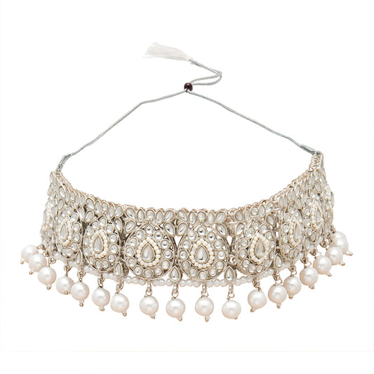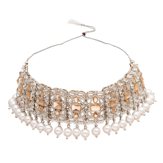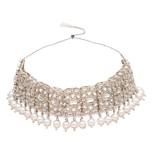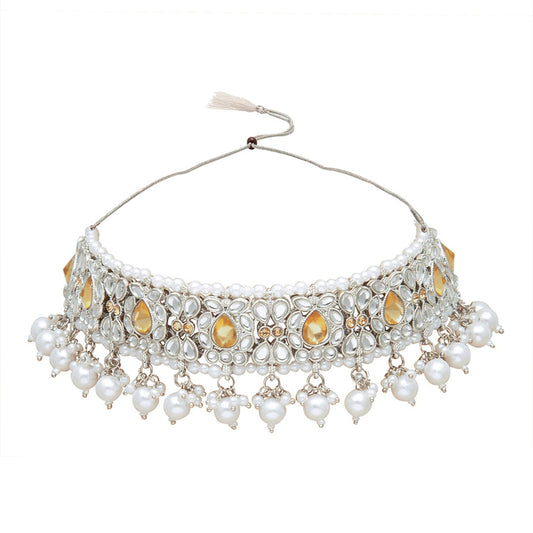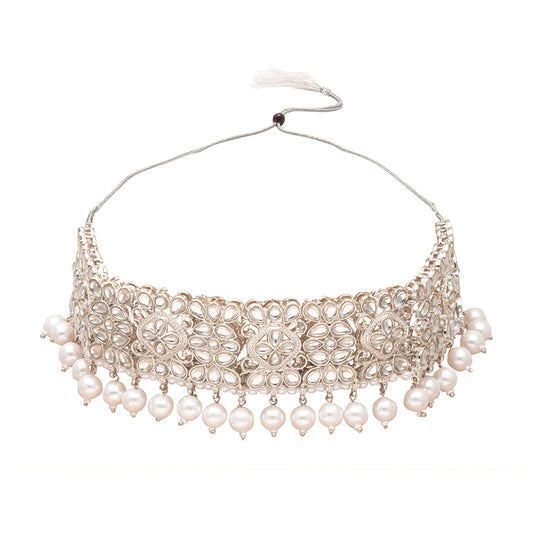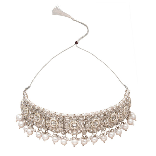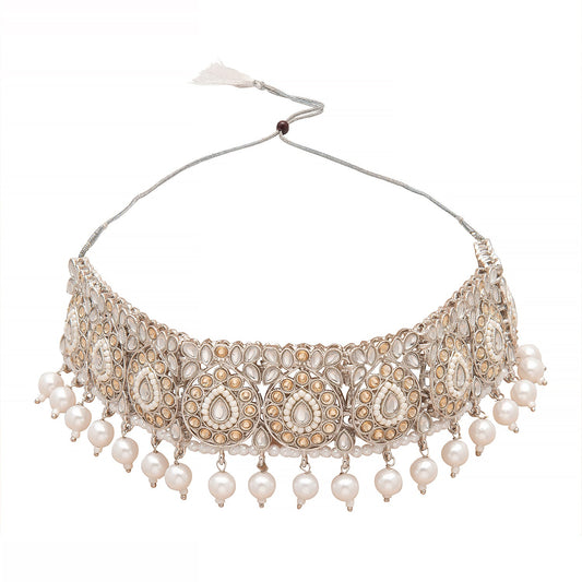 Shining Jewel SilverPlated Kundan Pearl Choker Bridal Nec...