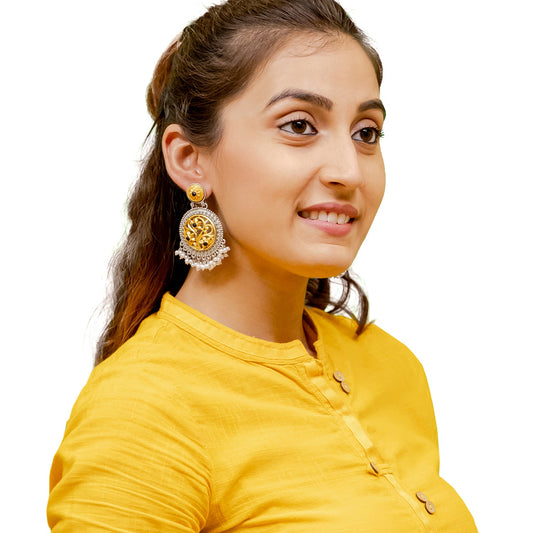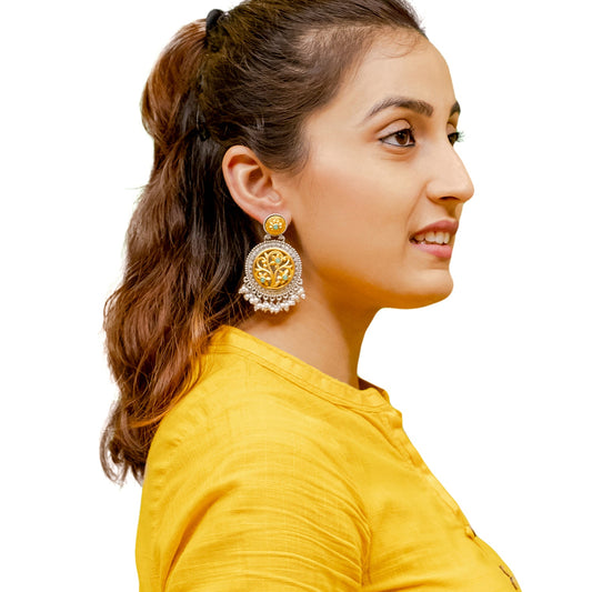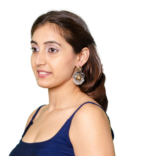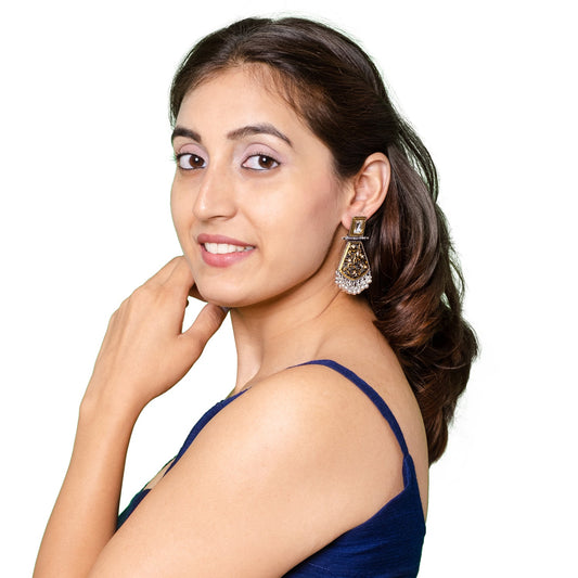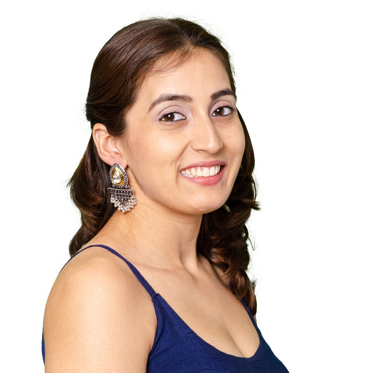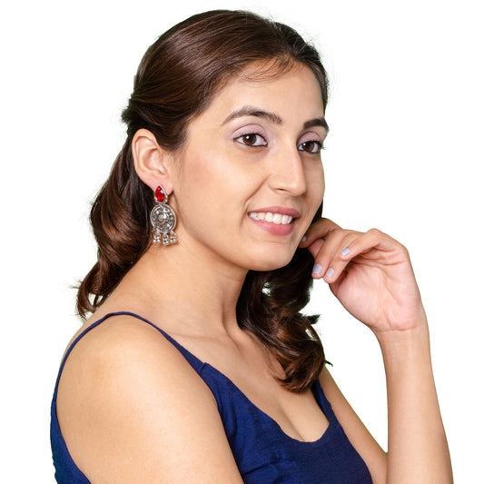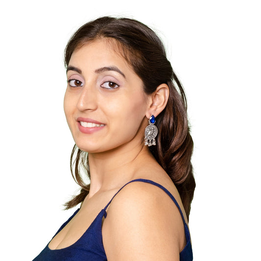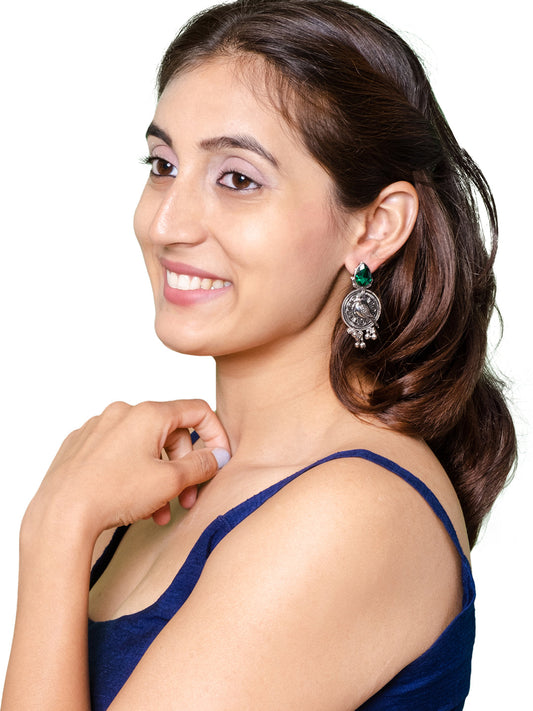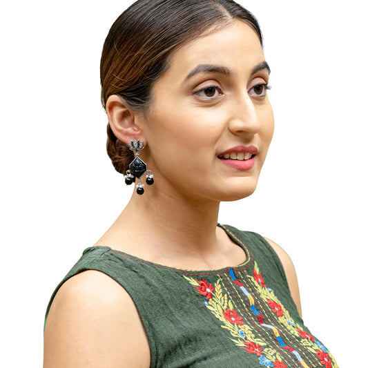 Antique Oxidised Silver Drop Earrings for Women & Gir...