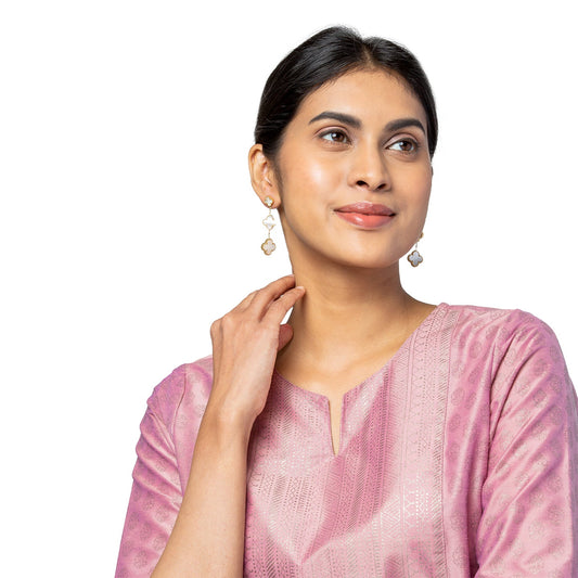 MOONDUST Gold Plated White Clover Style Flower Drop Earri...