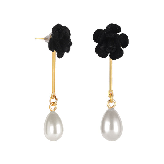 MOONDUST Gold Plated Black Clover Style Flower Drop Earri...