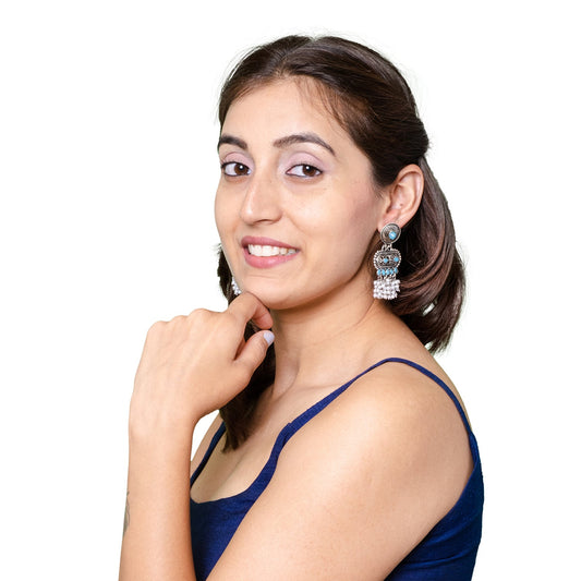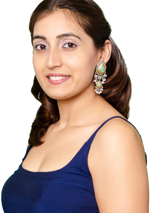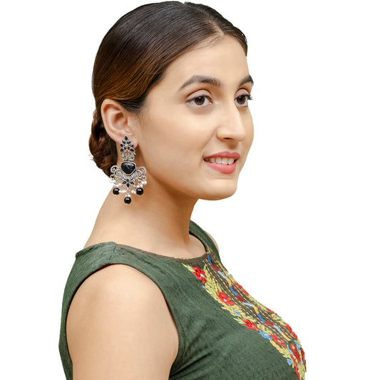 925 Antique Silver Oxidised Afghani Drop Earrings (SJ_1416)