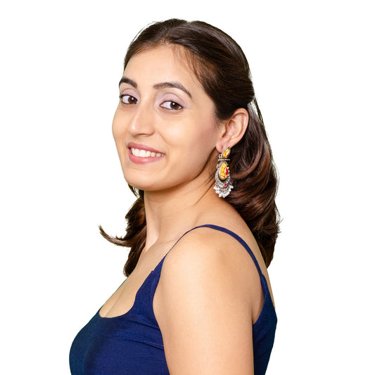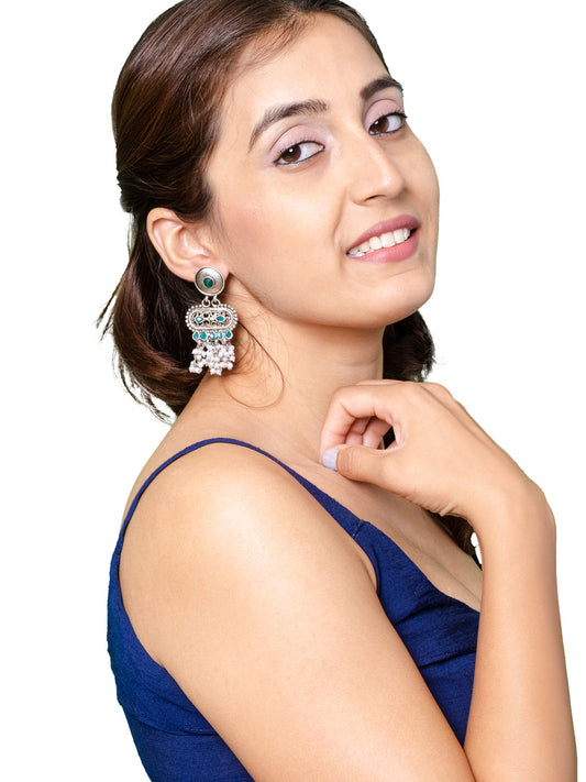 Traditional Indian Matte Silver Oxidised CZ Crystal Studd...