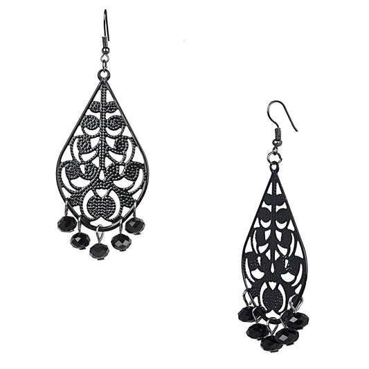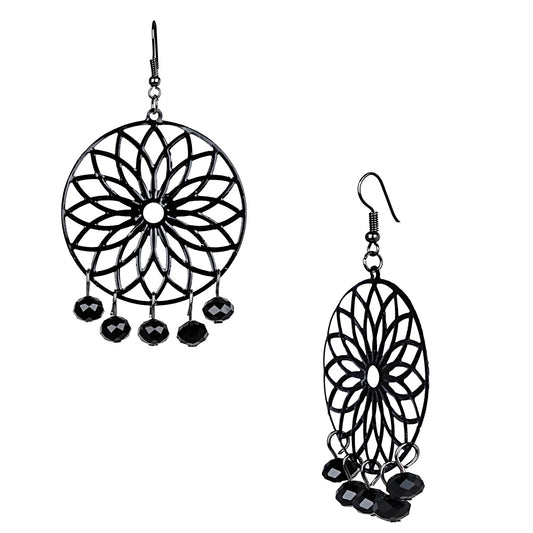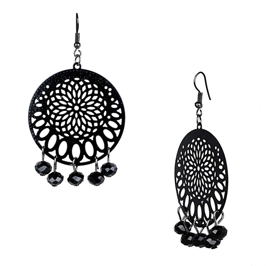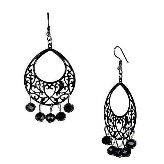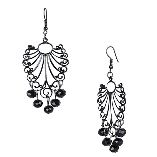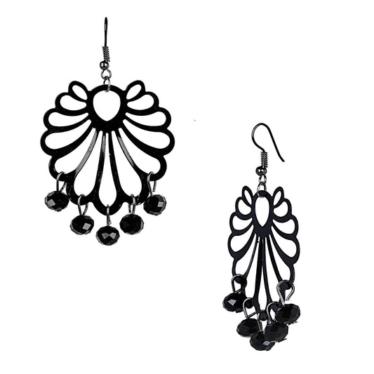 Black Metal Silver Oxidised Stylish Designer Party Drop C...