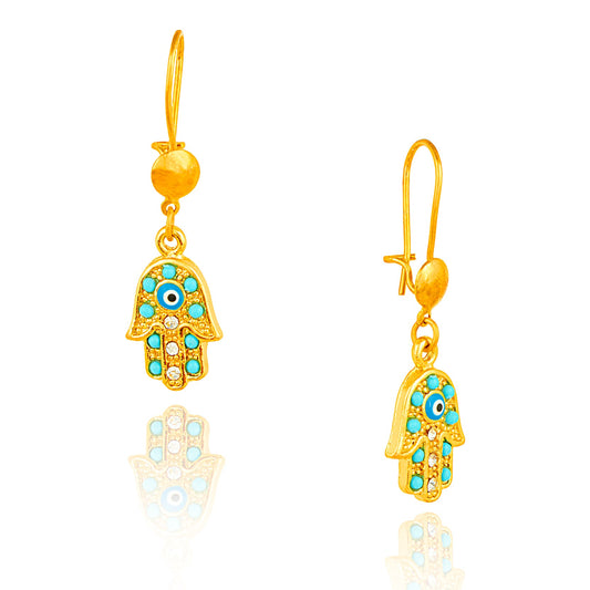 Gold Plated Hand Of Hamsa, Hamza Drop Earrings For Girls,...