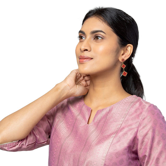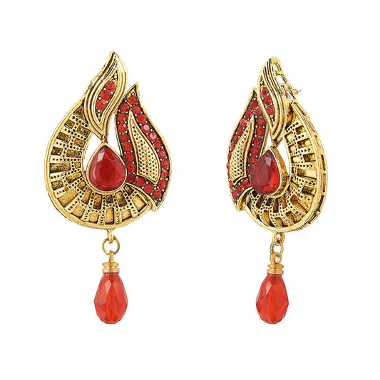 Traditional Ethnic And Fancy Drop Red Earrings (SJ_540)