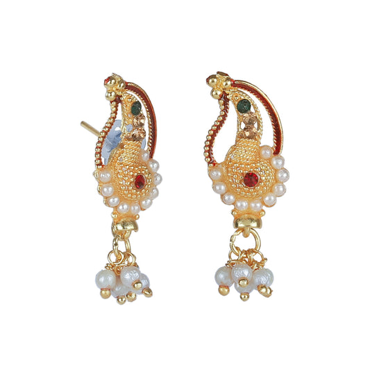 Traditional Designer Gold Plated Peacock Meenakari Dangle...