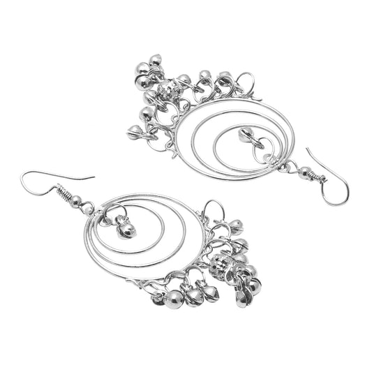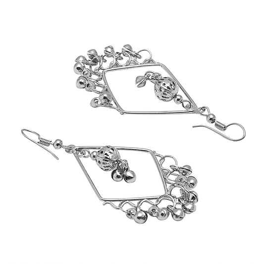 Antique Oxidised Silver Afghani Drop Earrings for Women &...