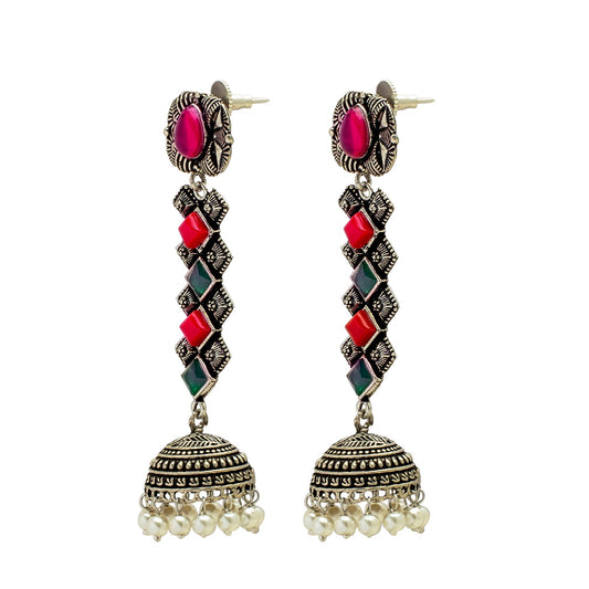 Antique Oxidised Silver Drop Earrings with Crystals for W...