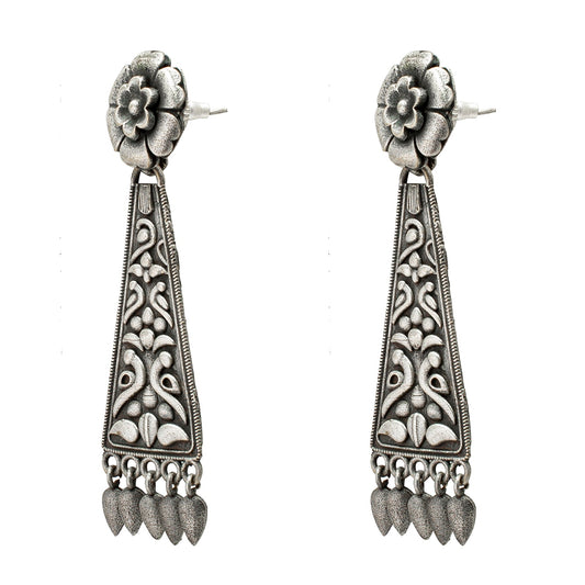 Antique Silver Oxidised Stylish Designer Drop Earrings fo...