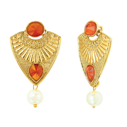 Traditional Ethnic And Fancy Drop Earrings With Orange Cr...