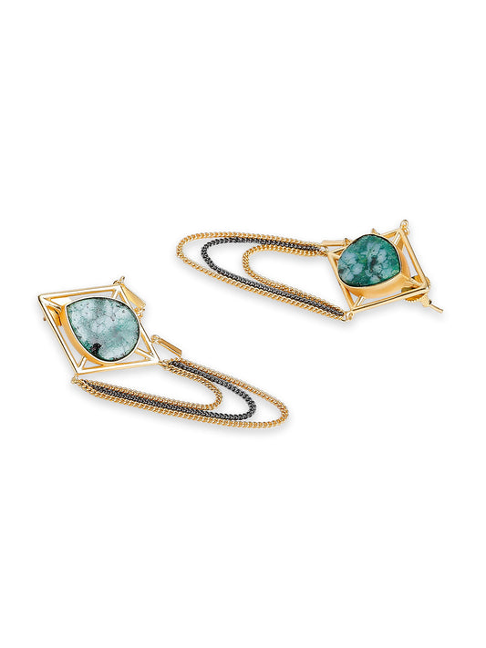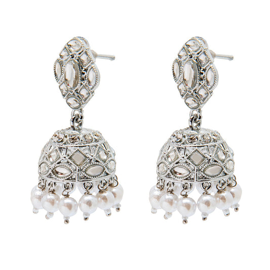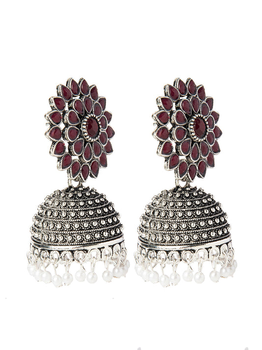 Traditional Indian Matte Silver Oxidised CZ Crystal Studd...