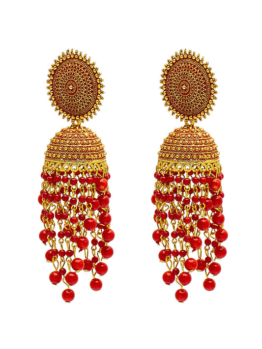 Shining Jewel Traditonal Indian Antique Gold Plated Red M...