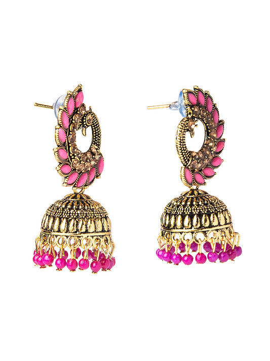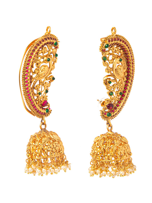 Shining Jewel Gold Plated Antique Traditional Peacock Jhu...