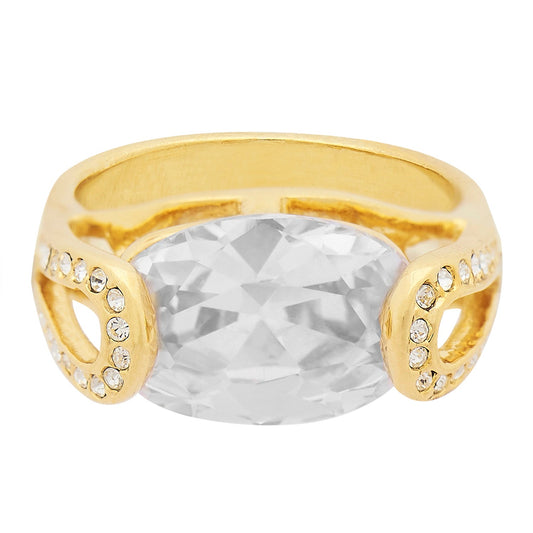 Oval Zirconia Gold Finger Ring (SJ_4003)