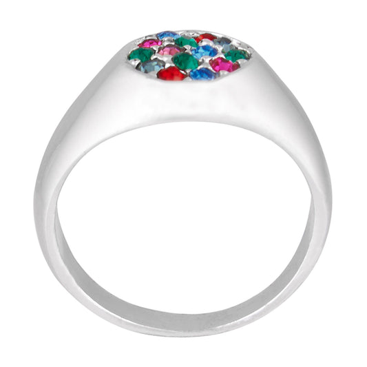 Rhodium Mulitcolor Round Finger Ring (SJ_4034)