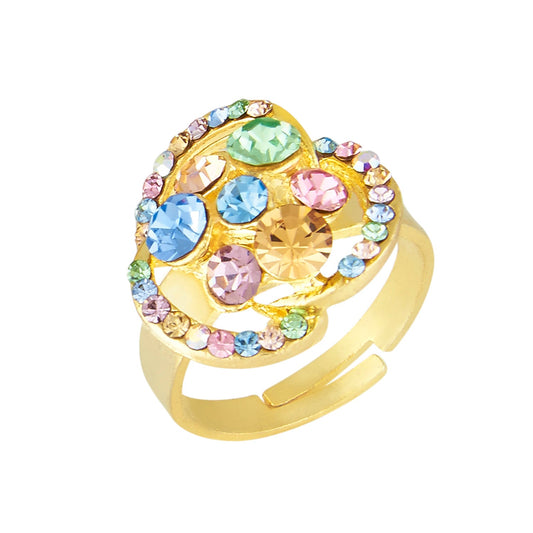 Gold Plated Multicolor Crystal Fashionable Finger ring (S...