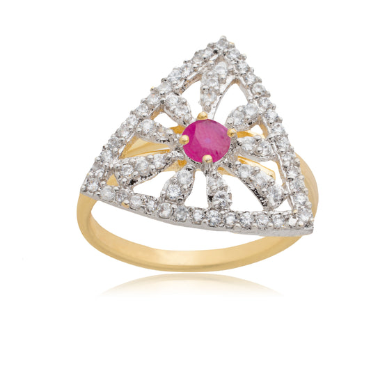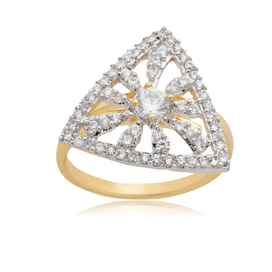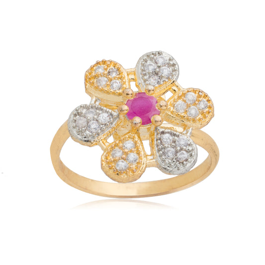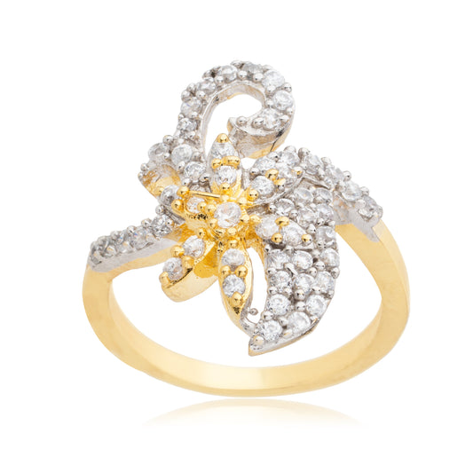 Gold Alloy Flower Design American Diamond Ring (SJ_4101)