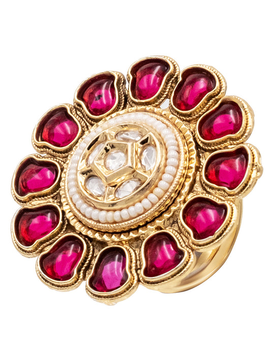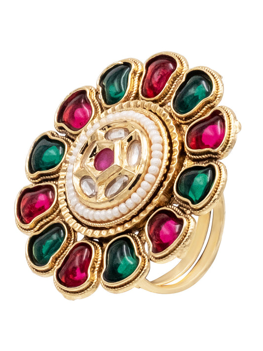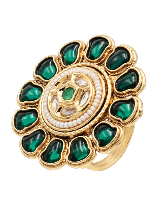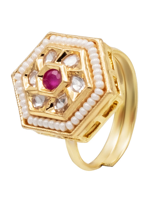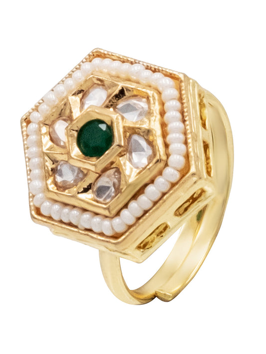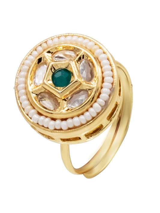 Traditional Indian Gold Plated Pure Copper Kundan, Pearls...