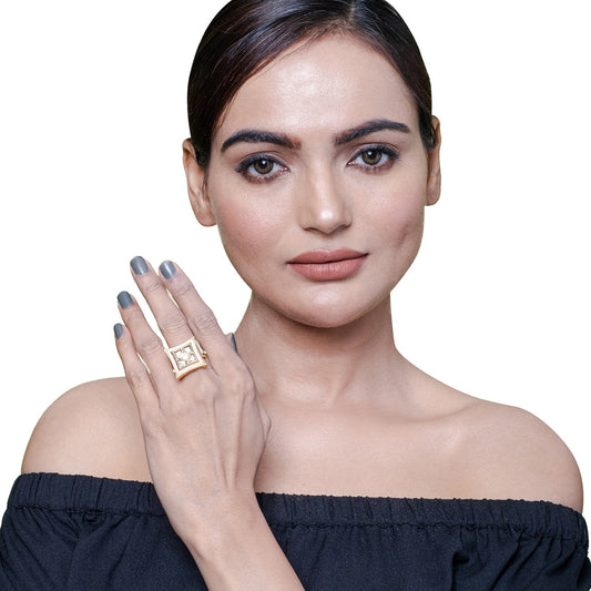 Two tone Plated Contemporary Designer Finger Ring (SJ_4100)
