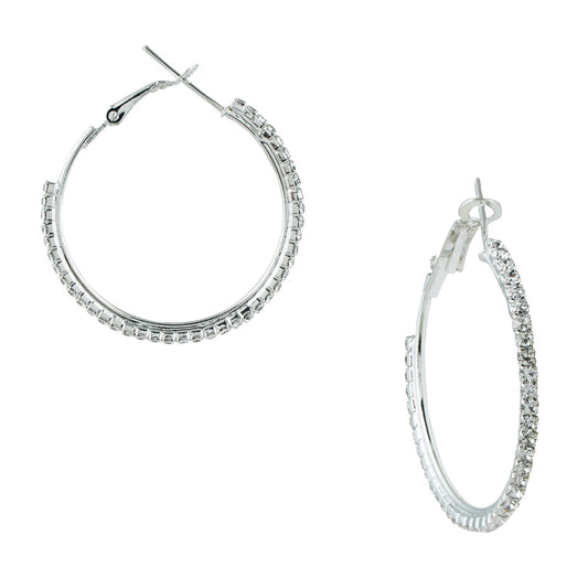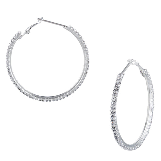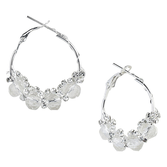 Austrian Crystal and CZ Silver Plated Hoop Earrings for W...