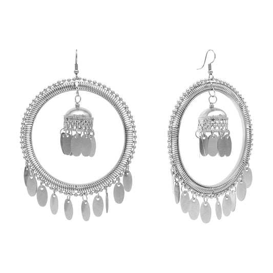 Oxidised Black Silver Multilayered Stylish Hoop and Jhumk...
