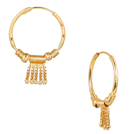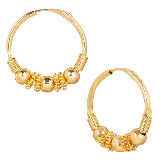 18K Gold Traditional Hoop Earrings with Pearls (SJ_1697)