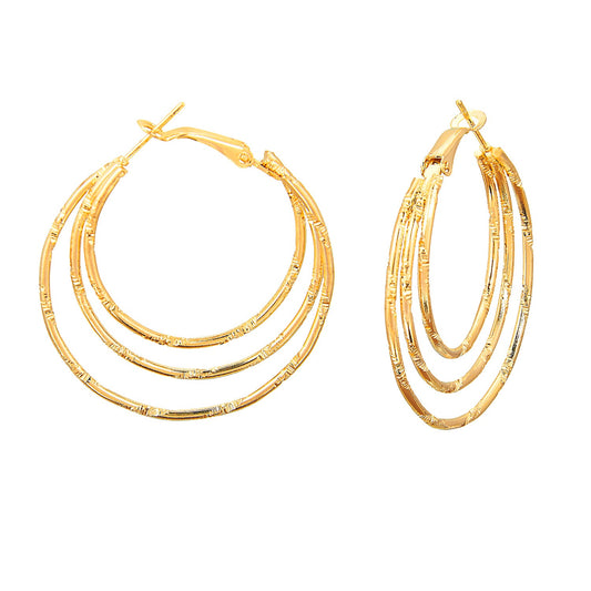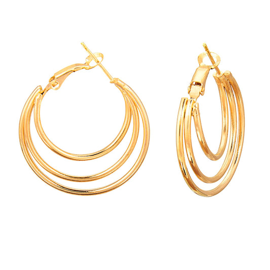 Three Layered Designer Golden Hoop Earring (SJ_621)