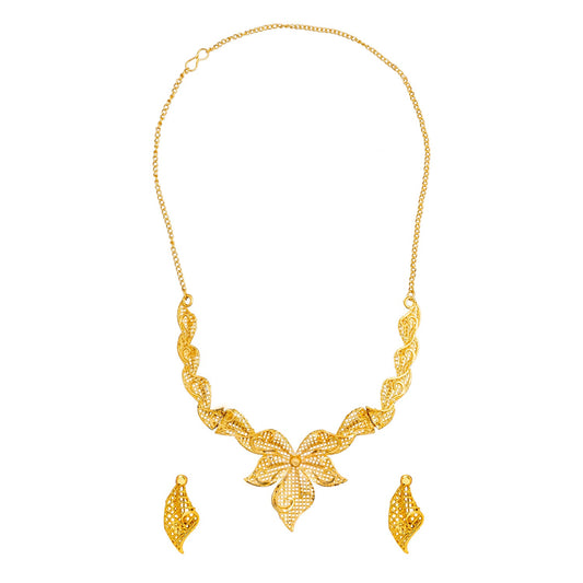 Shining Jewel Traditional Gold Plated Flower Design Neckl...