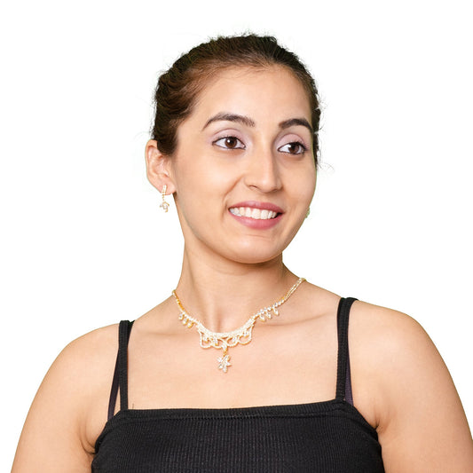 Gold Plated Designer Chain Wrap Layer Flower Clover Neckl...