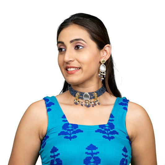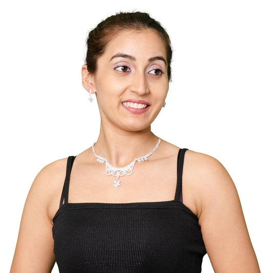Silver Plated Blue Stones Neklace Set with Matching Earri...