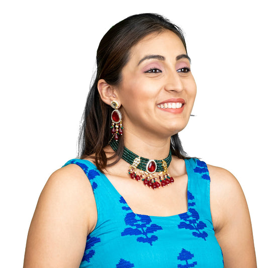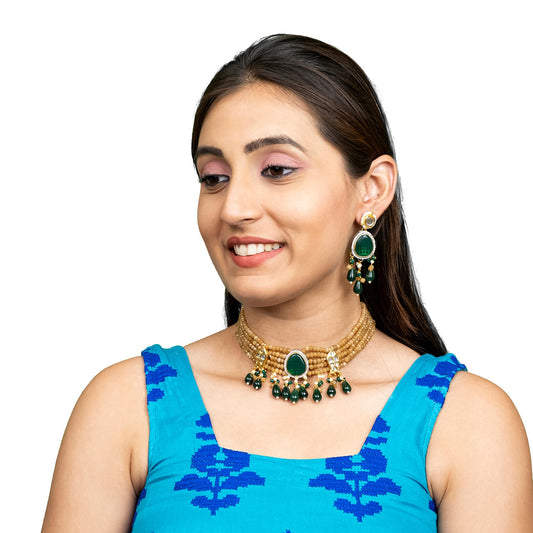 Silver Plated Green Stones Neklace Set with Matching Earr...