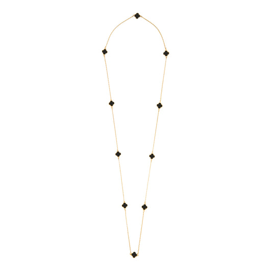 Black Onyx Long Chain Alhambra Clover Necklace For Girls...