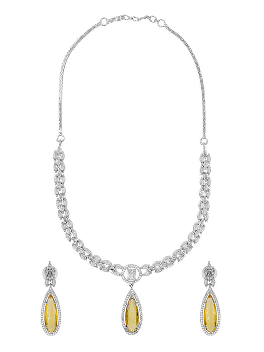 Silver Plated Yellow Stone Neklace Set with Matching Earr...