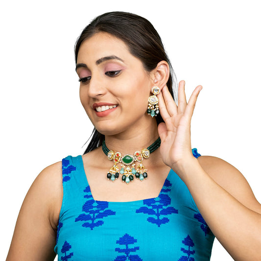 Shining Jewel Gold Plated Bridal Wedding Multicolored Kun...