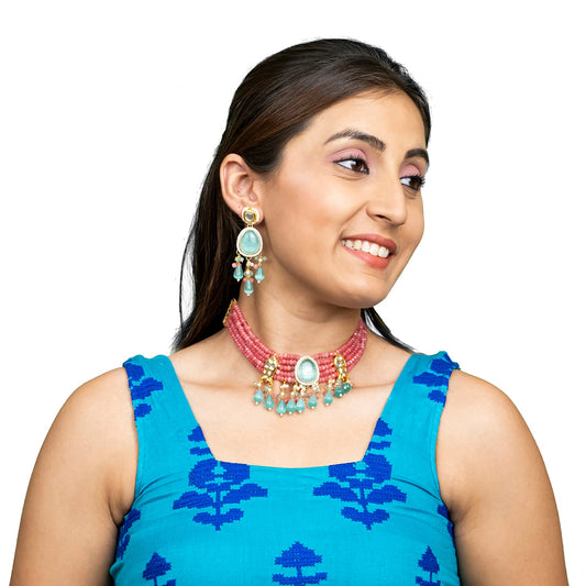 Silver Plated Light Green Stone Necklace Set with Matchin...