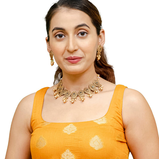 Traditional Indian Matte Gold Plated CZ, Studded Temple A...