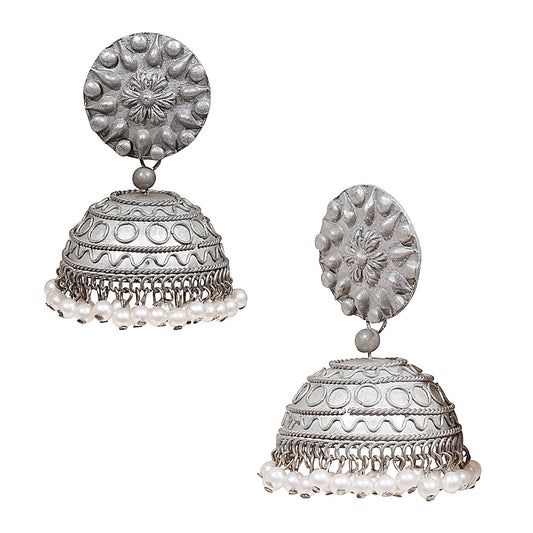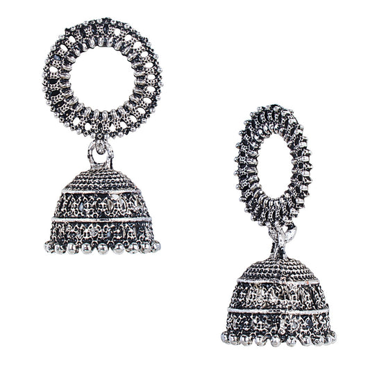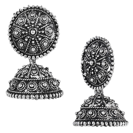 Antique Silver Oxidised Stylsh Designer Jhumki Earrings f...