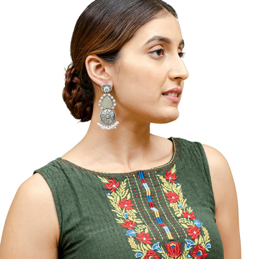 Shining Jewel Traditional Indian Matte Silver Oxidised CZ...